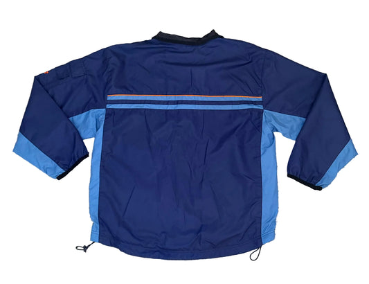 Vintage 90s Starter Blue Colour Block with Sky Blue-Orange Stripe USA Sportswear Zip Up Windbreaker Jacket, Size-Large