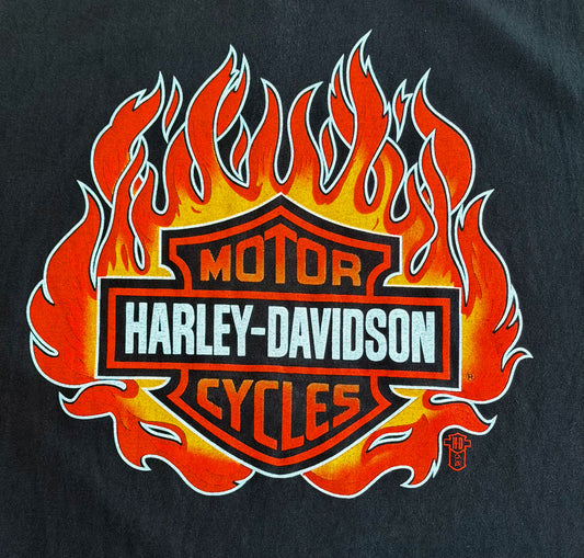 Vintage Harley Davidson Flaming Bar & Shield Single Stitch T-Shirt Large