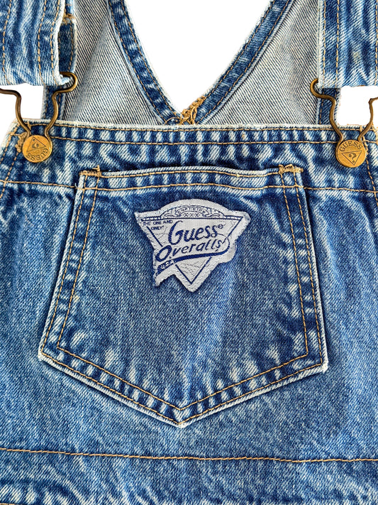 Vintage GUESS Kids Denim Overalls – Classic 90s Blue Jean Short Dungarees, Size 6-7 Years