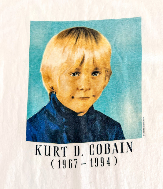 Vintage 1995 Kurt Cobain Tribute T-Shirt — Giant Tag USA Made Single Stitch — Nirvana Grunge Rock Tee — Size-Large