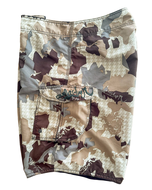 Vintage Quiksilver Camo Cargo Board Shorts – Y2K Surf Skate Utility Style – Size X-Large
