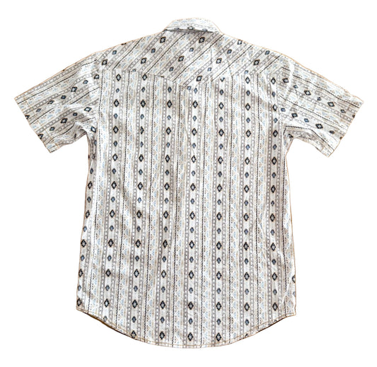 Vintage Panhandle Rough Stock Western – Aztec Print Pearl Snap Short Sleeve Cowboy Shirt, Size-Medium