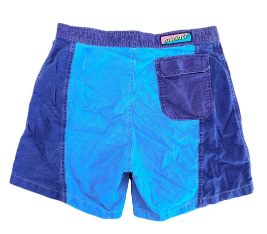 Vintage 90s Instinct Surfwear Colour-Block Shorts Purple Blue | Acid Wash Surf Skate Beachwear | Size-Small