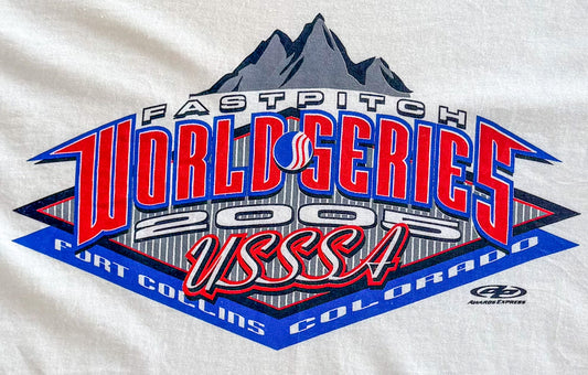 Vintage 2005 USSSA Fastpitch World Series – Fort Collins Colorado Graphic T-shirt – White Gildan Heavy Cotton – Size Medium