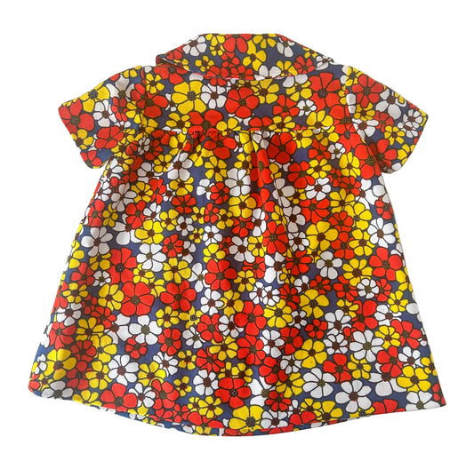 Vintage 1970s Handmade Kids Dress – Retro Floral Mod Print, Short Sleeve A-Line Mini, Rare Flower Power Children’s Clothing, Size - 2-3 Years