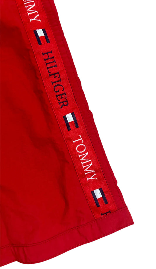 Tommy Hilfiger Vintage 2000s Red Branded Embroidered Boardshorts Large