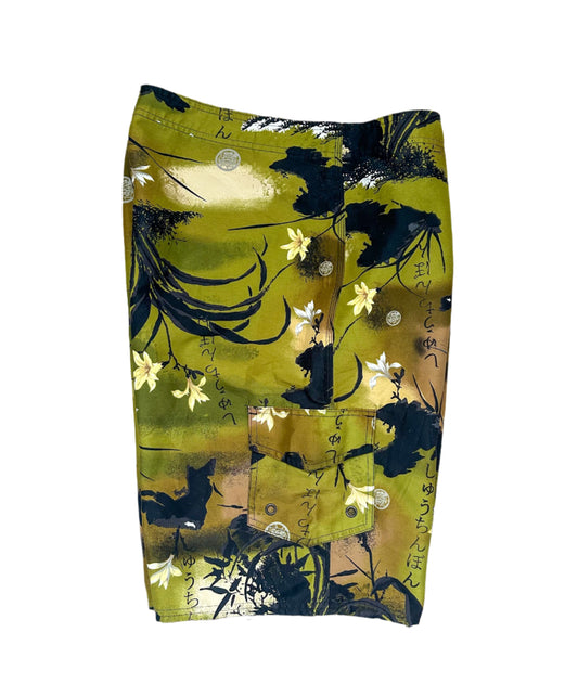 No Boundaries Vintage 2000s Oriental Print Cargo Pocket Green Boardshorts XL
