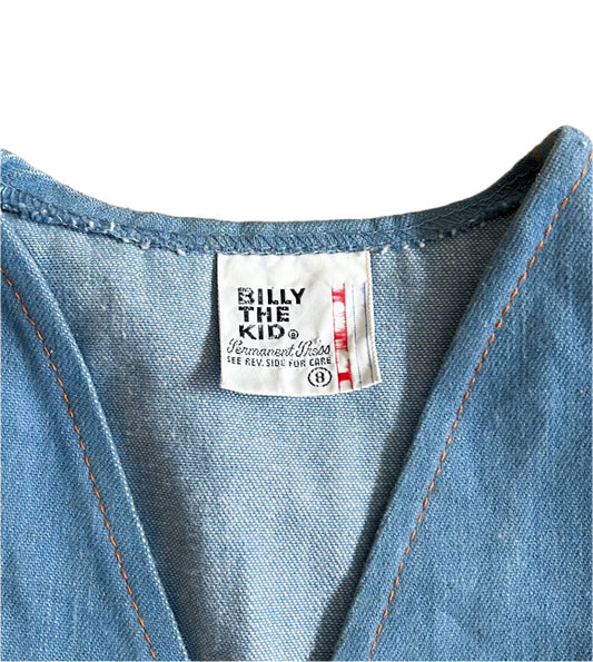 Vintage 70s Billy Te Kid Permanent Press Denim Pop Button Waistcoat Vest 8 Years Rare