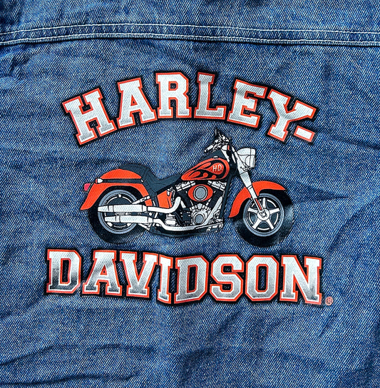 Vintage 1990s Harley Davidson Denim Branded Jacket 12-14 Years
