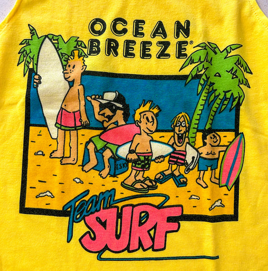 Vintage Ocean Breeze Team Surf Print Beach Singlet 7-8 Years
