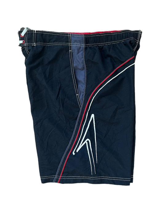 Speedo Vintage 2000s Black With Embroidered Piping Boardshorts Large
