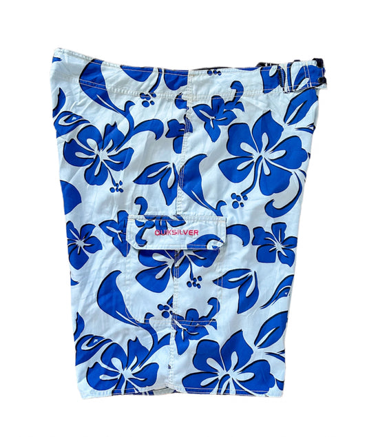 Quicksilver Vintage 2000s Blue Classic Floral Print Boardshorts XL