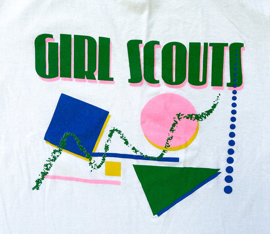 Vintage 1990s Girl Scouts Single Stitch Made In U.S.A White Cotton T-Shirt Medium