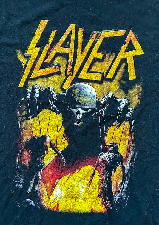 Vintage Slayer Skeleton Soldier Print Metal Band Artist Black Cotton T-shirt Large
