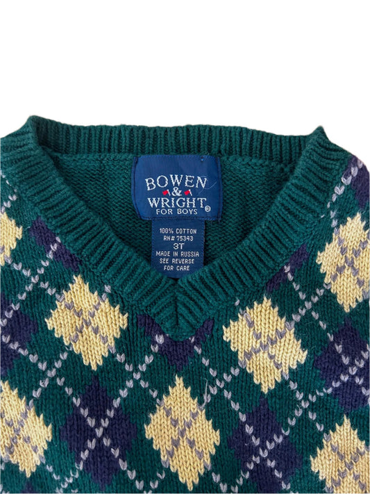 Vintage Kids Cotton Knit Argyle Pattern Tank 3 Years