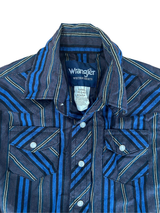 Vintage Kids Wrangler Western Striped Snap Button Long Sleeve Shirt 3-4 Years
