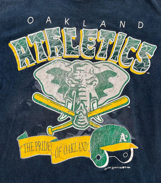 Vintage 1994 Oakland Athletics T-Shirt MLB True Fan Sportswear Elephant Logo Black Tee, Size - L