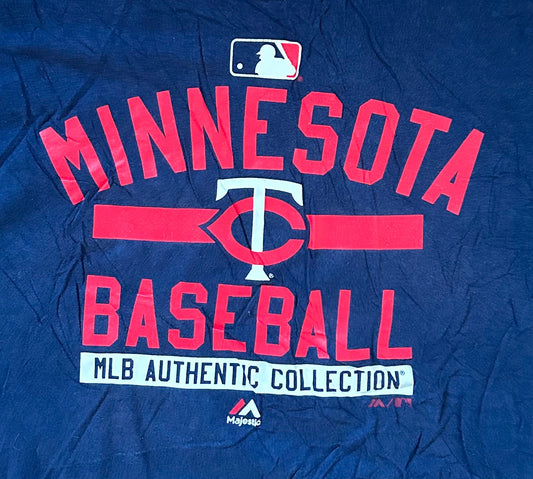 Minnesota Baseball MLB Authentic Majestic Label Blue Cotton T-shirt XL