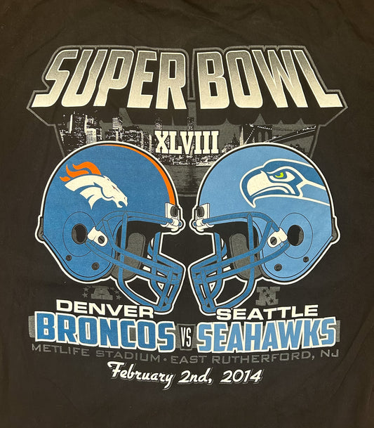 Super Bowl 2014 Denver Broncos vs Seattle Seahawks Black Cotton T-shirt XL