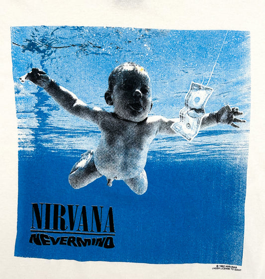 Vintage 90s Nirvana “Nevermind” Album Tee – White – Made in USA – Iconic Grunge Band Merch, Size - XL