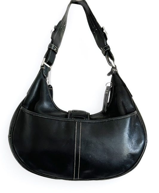 Vintage Coach Bag Black Leather Designer Y2K Shape