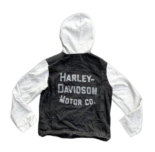 Vintage Kids Harley Davidson Hooded Black Denim Jacket 12-14 Years