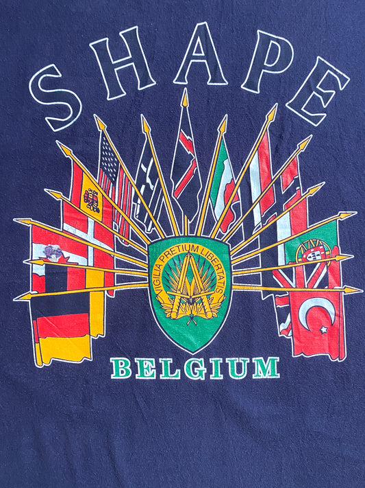 Vintage 90s SHAPE Belgium NATO Military T-Shirt – Gear for Sports Big Cotton USA Made Graphic Tee Size L