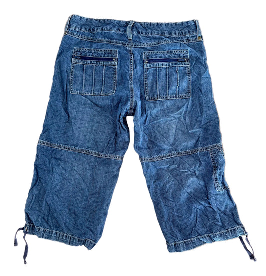 Vintage Y2K Lee “One True Fit” Blue Wash Utility Pockets Denim Adjustable Hem Streetwear Cargo Capri Pants,Size-34"Waist