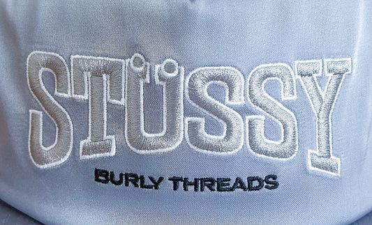 Stüssy Burly Threads Silver Snapback Embroidered Cap – Vintage Streetwear Hat
