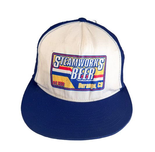 Vintage Steamworks Beer Trucker Hat | 90s Durango Colorado Brewery Snapback | Blue & White Mesh Cap | Retro Beer Advertising Hat