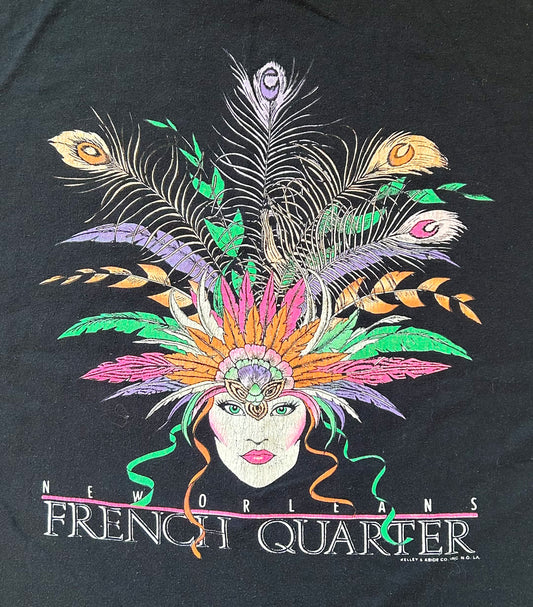 Vintage New Orleans French Quarter Jerzees Label Made In USA Black Cotton T-shirt XL