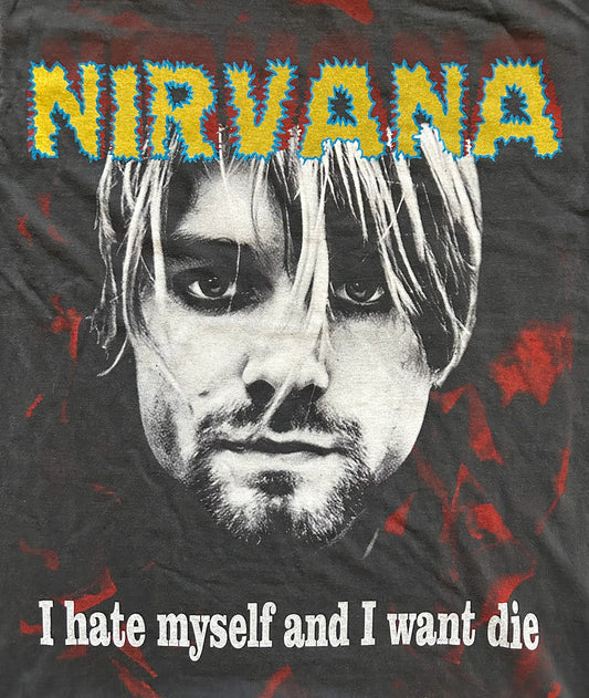 Vintage Nirvana “I Hate Myself And I Want Die” Kurt Cobain Grunge Rock Band Tee – Resurrección Tag, Single Stitch, Made in USA, XL - Rare Collectible