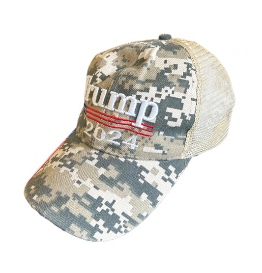 Trump 2024 Embroidered Camo Flek Print American Flag Cap