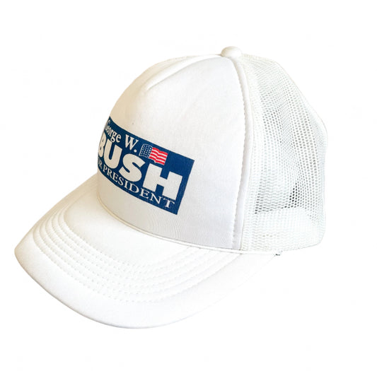 Vintage 2000s George W Bush Campaign For President White Trucker Cap