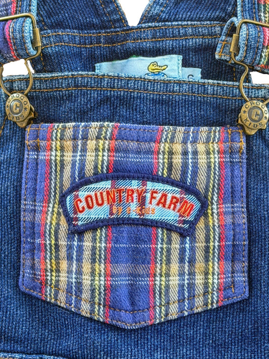Vintage 90s Kids Denim Overalls Country Farm Patchwork Dungarees Blue Plaid Detail Size 6