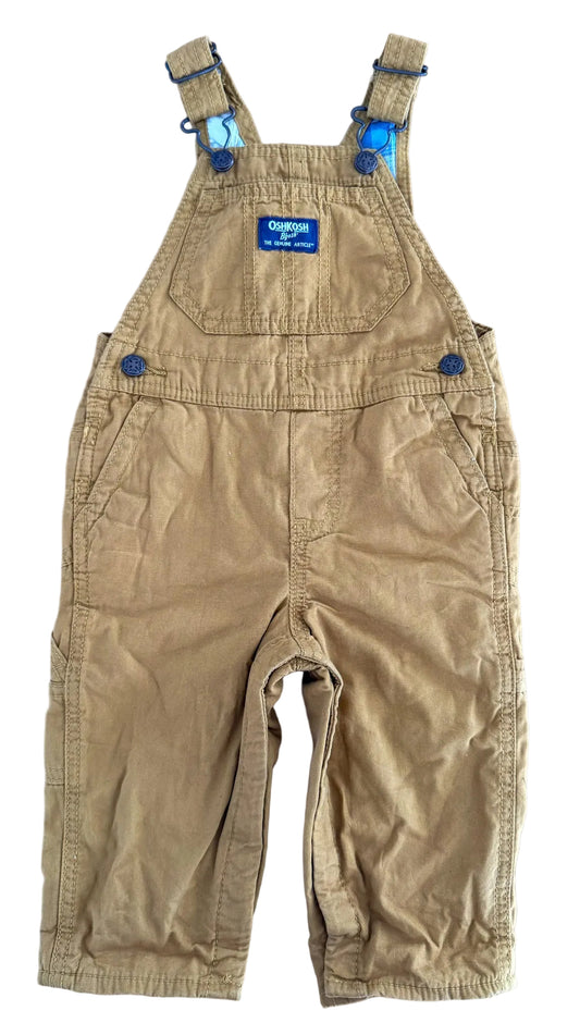 Vintage Kids OshKosh B'Gosh Tan Canvas Plaid Lined Overalls Size 12 Months