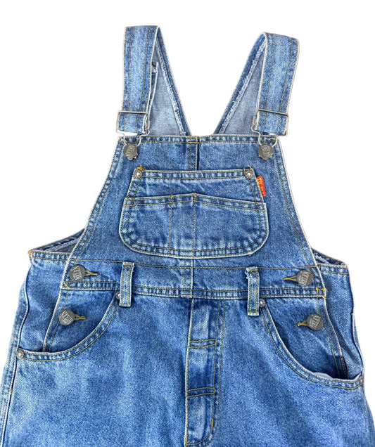 Vintage OshKosh B’gosh Denim Short Overalls – Carpenter Style Light Wash | 3 Years