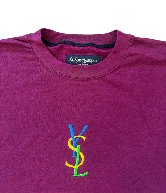 Yves Saint Laurent Embroidered Designer Burgundy Cotton Sweatshirt XL Rare