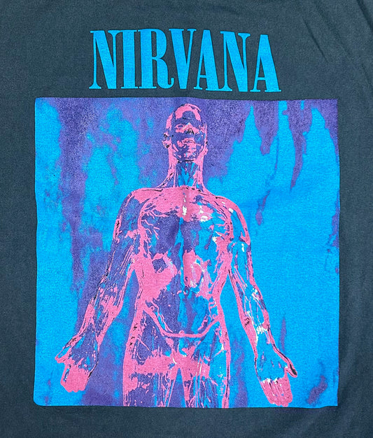 Nirvana 1990s Silver Single Stitch Made USA Oneita Power-T Black Cotton Band T-shirt, Size-Large Rare