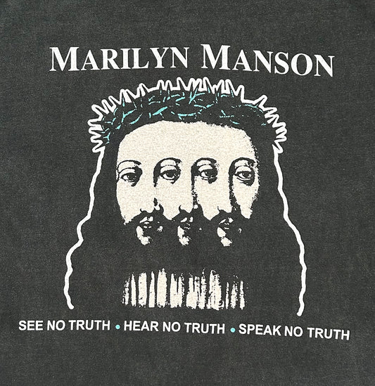 Vintage 90s Marilyn Manson “See No Truth Hear No Truth Speak No Truth” Giant USA Tour Tee – Rare Band T-Shirt, Single Stitch, X-Large - Rare