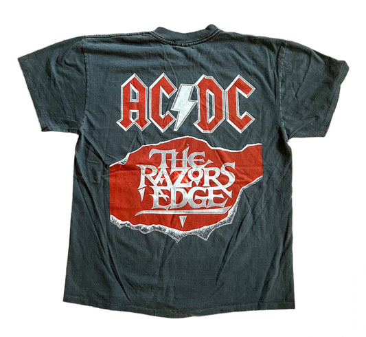 Vintage 1990s ACDC The Razors Edge World Tour Single Stitch Brockum Label Made In USA Black Cotton Band T-shirt Large Rare