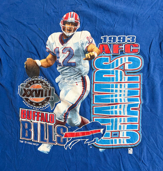 Vintage 1993 Original Buffalo Bills Super Bowl Final Single Stitch Made USA Blue Cotton NFL T-Shirt Large Rare