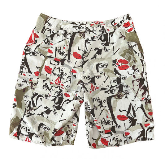 Volcom Vintage 2000s Eyes and Lips Face Print Boardshorts Medium