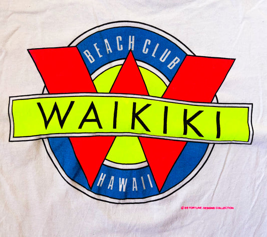 Vintage 1989 White Waikiki Beach Club Surf Tee XL