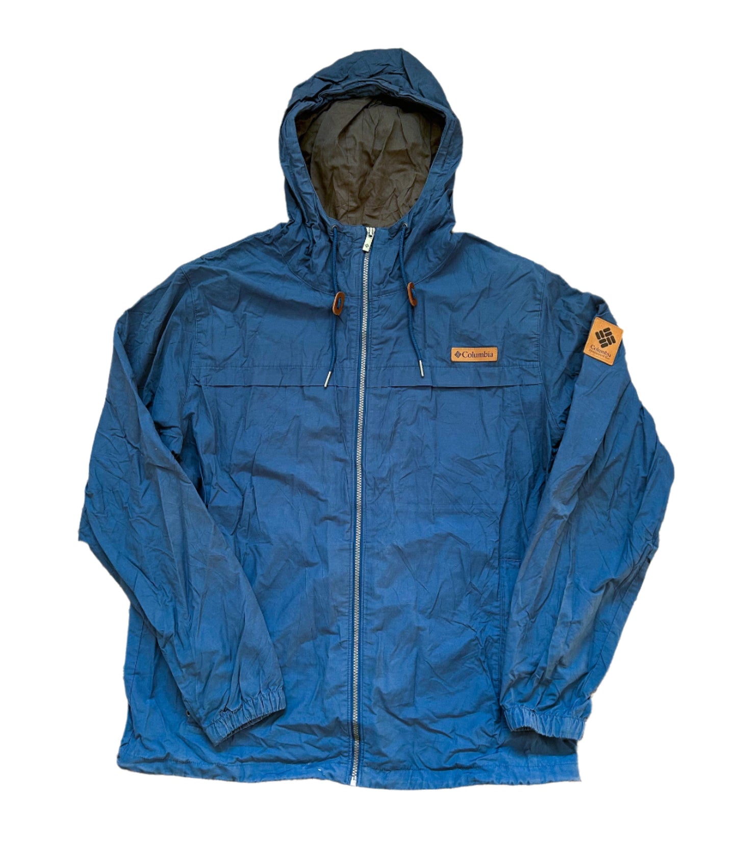 Columbia Blue Hooded Branded Outerwear Zip Up Jacket Large