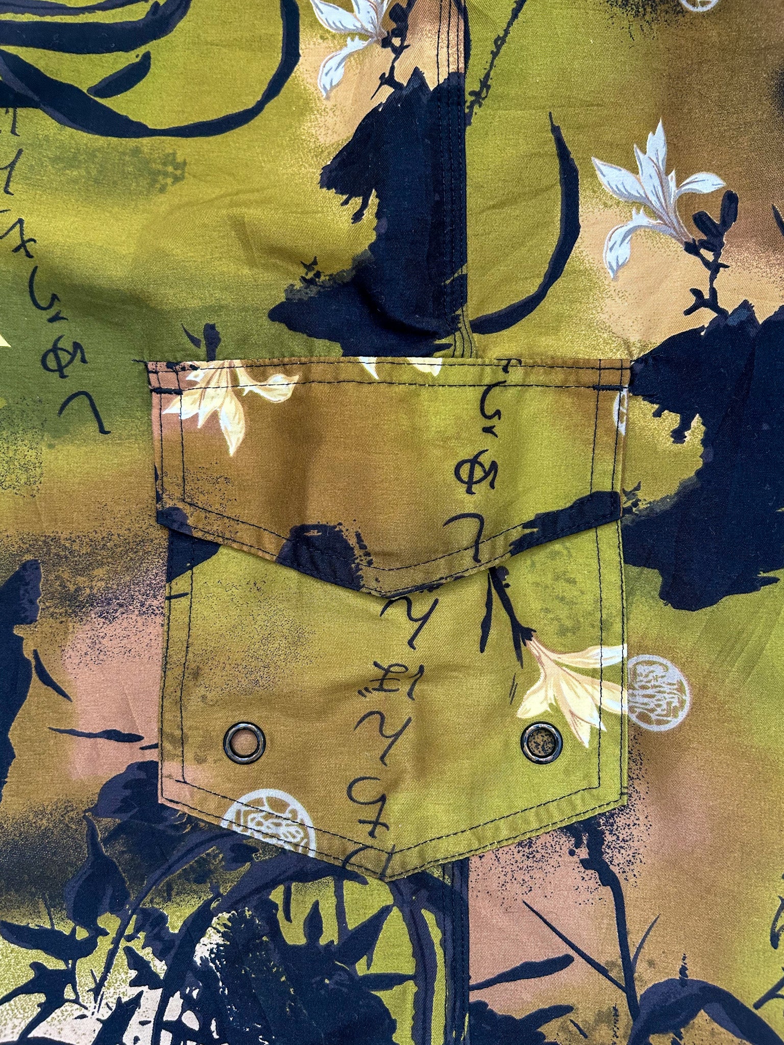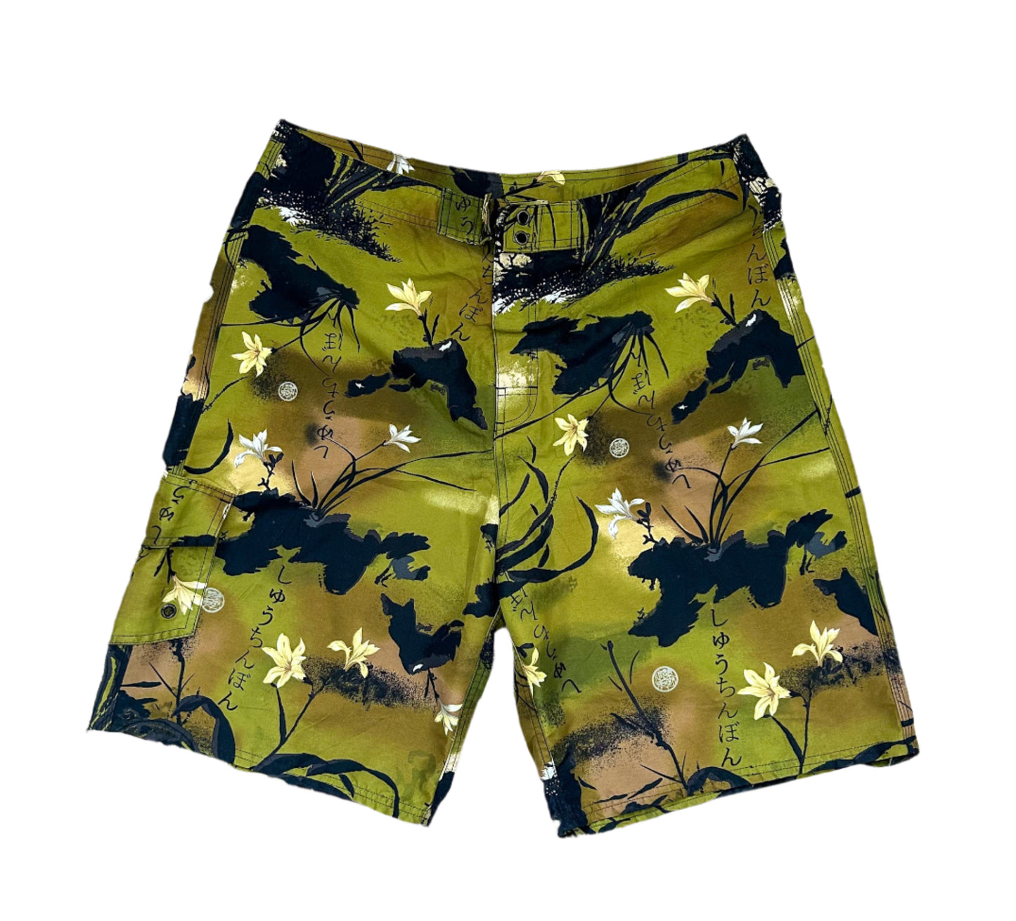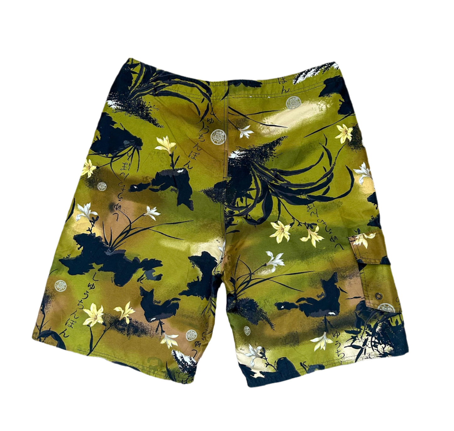 No Boundaries Vintage 2000s Oriental Print Cargo Pocket Green Boardshorts XL