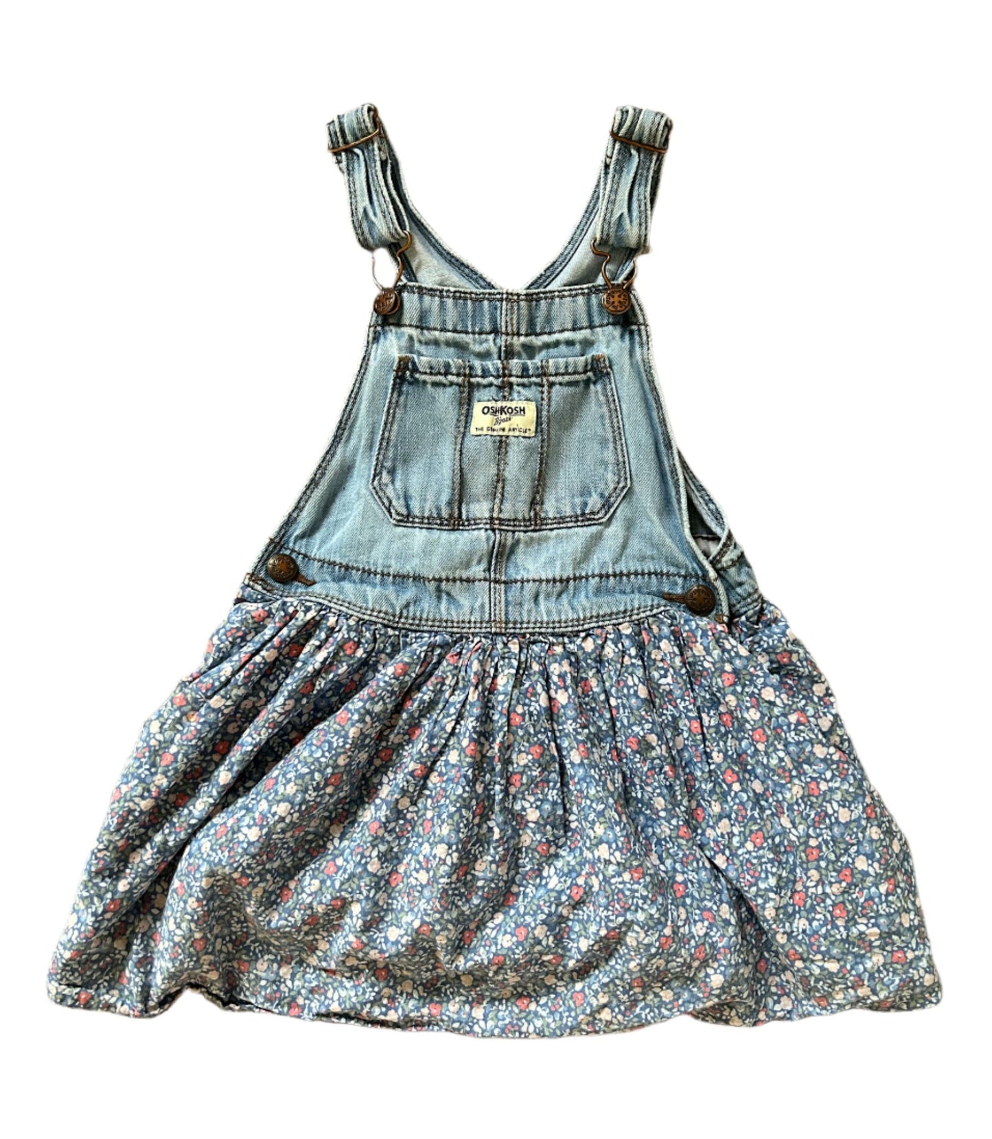 OshKosh B'Gosh Kids Denim And Floral Pattern Dress Overalls 5 Years