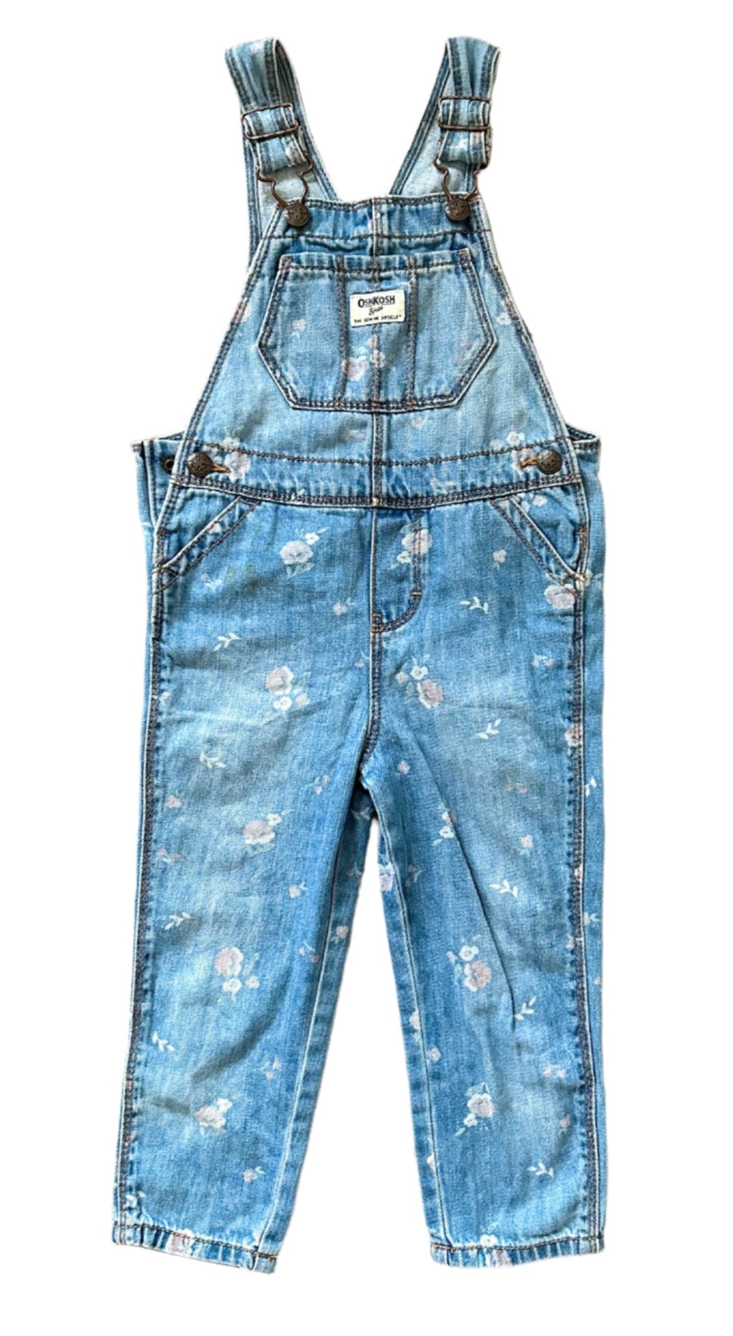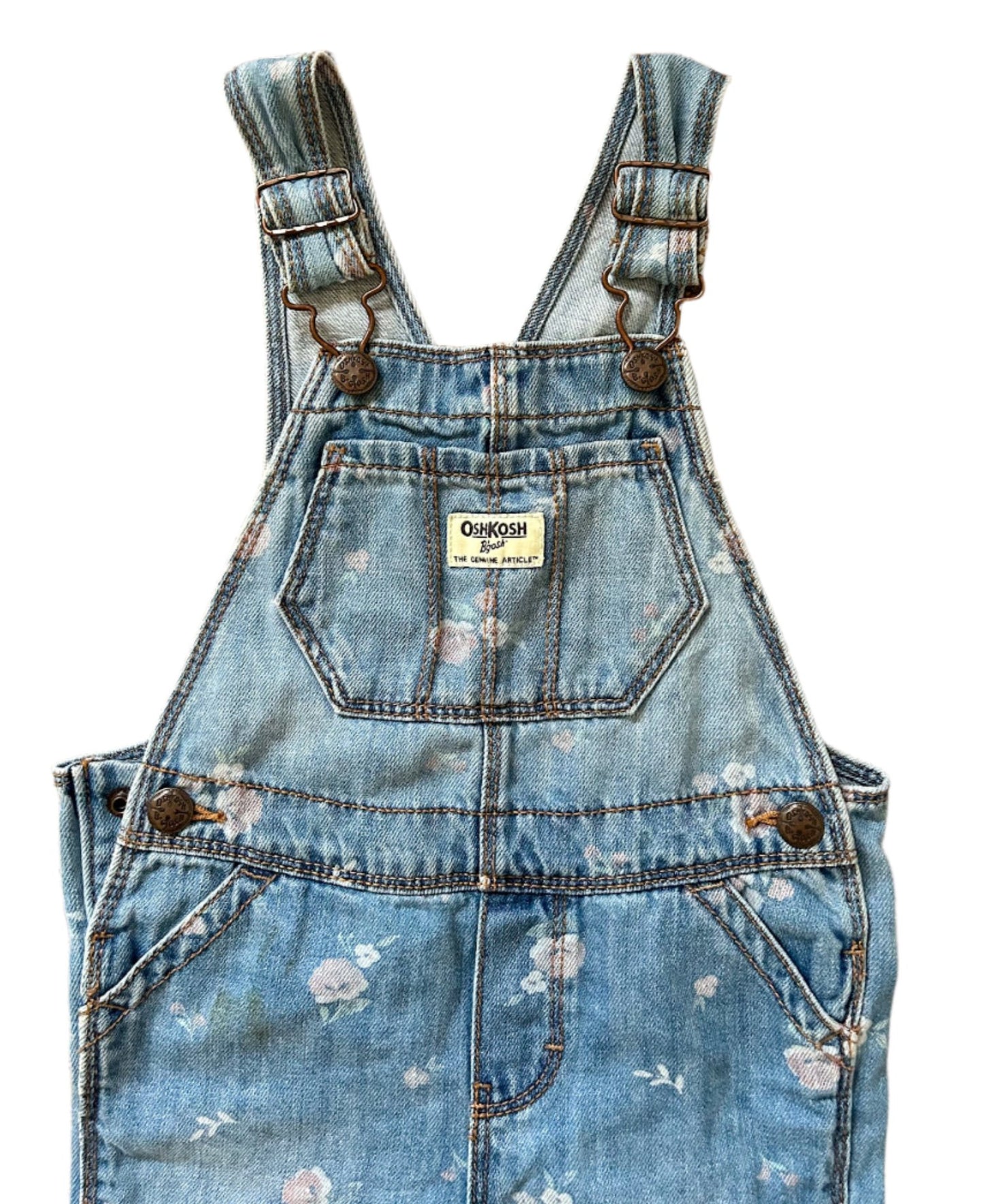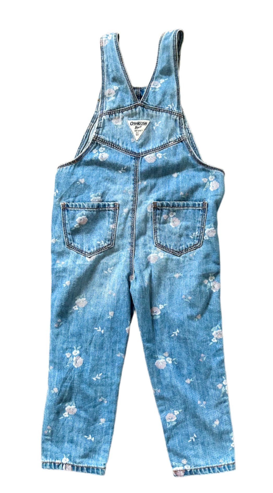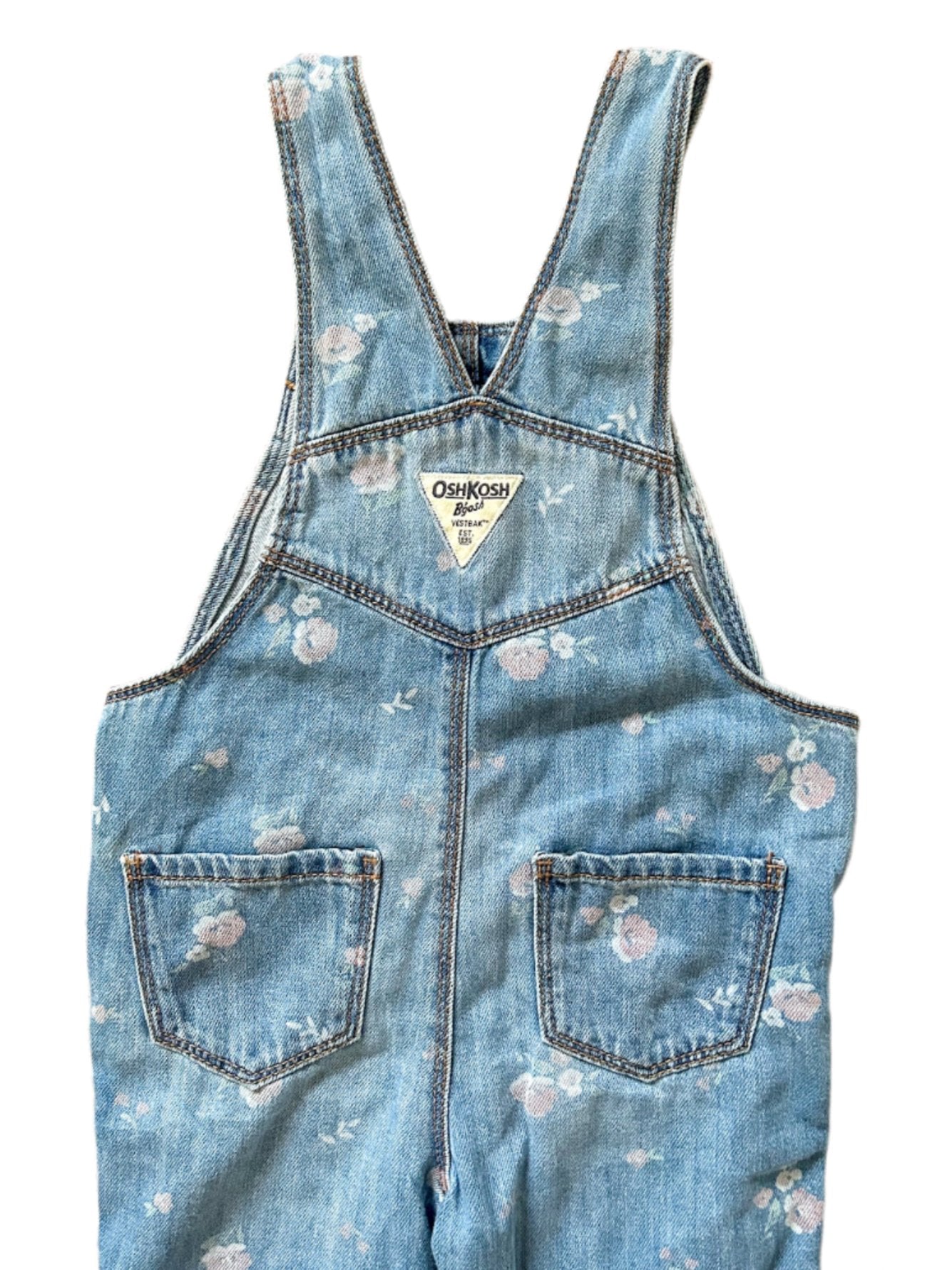 OshKosh B'Gosh Kids Floral Pattern Blue Denim Overalls 3 Years