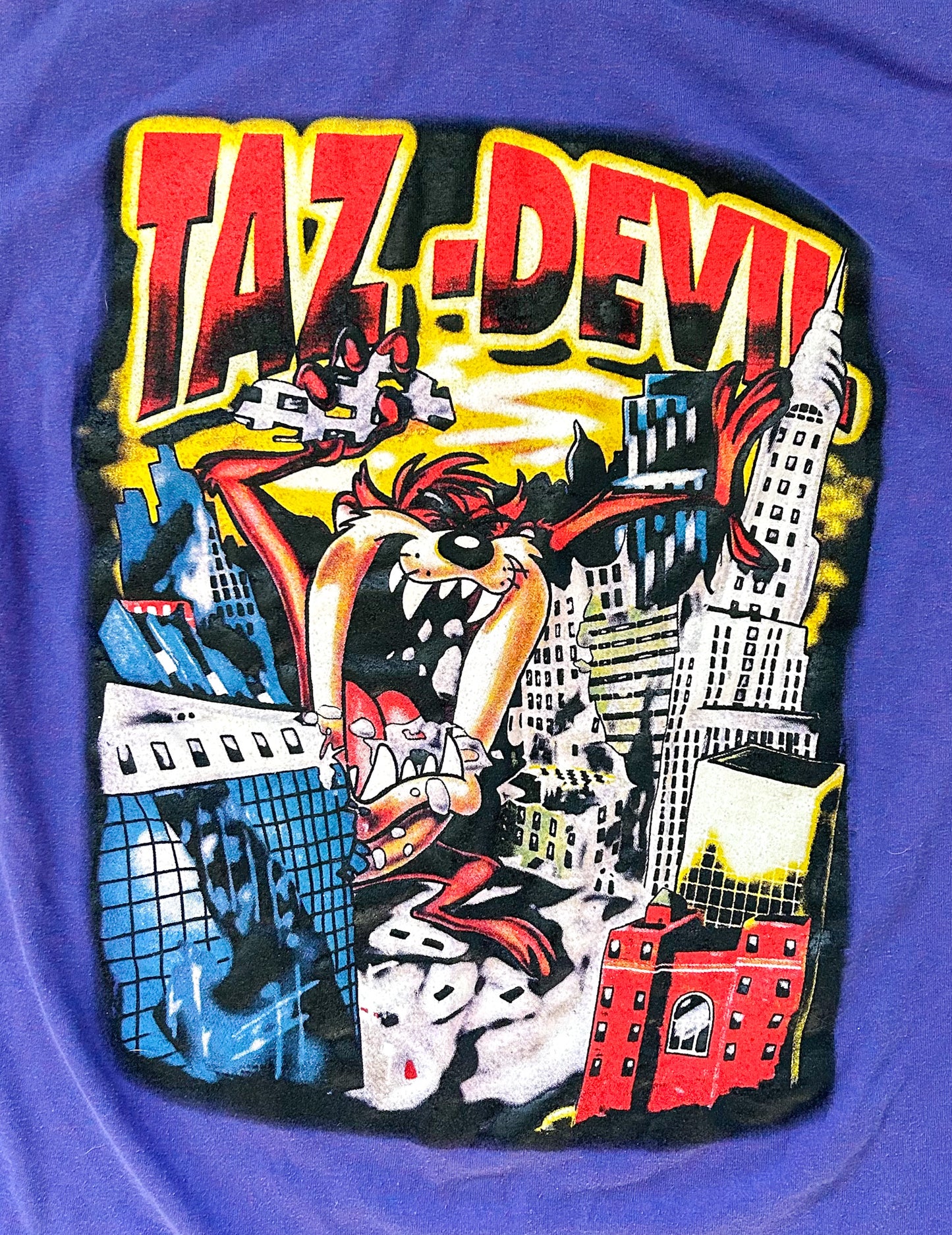 Taz Devil In The City Looney Tunes Purple Cotton Print T-Shirt Medium