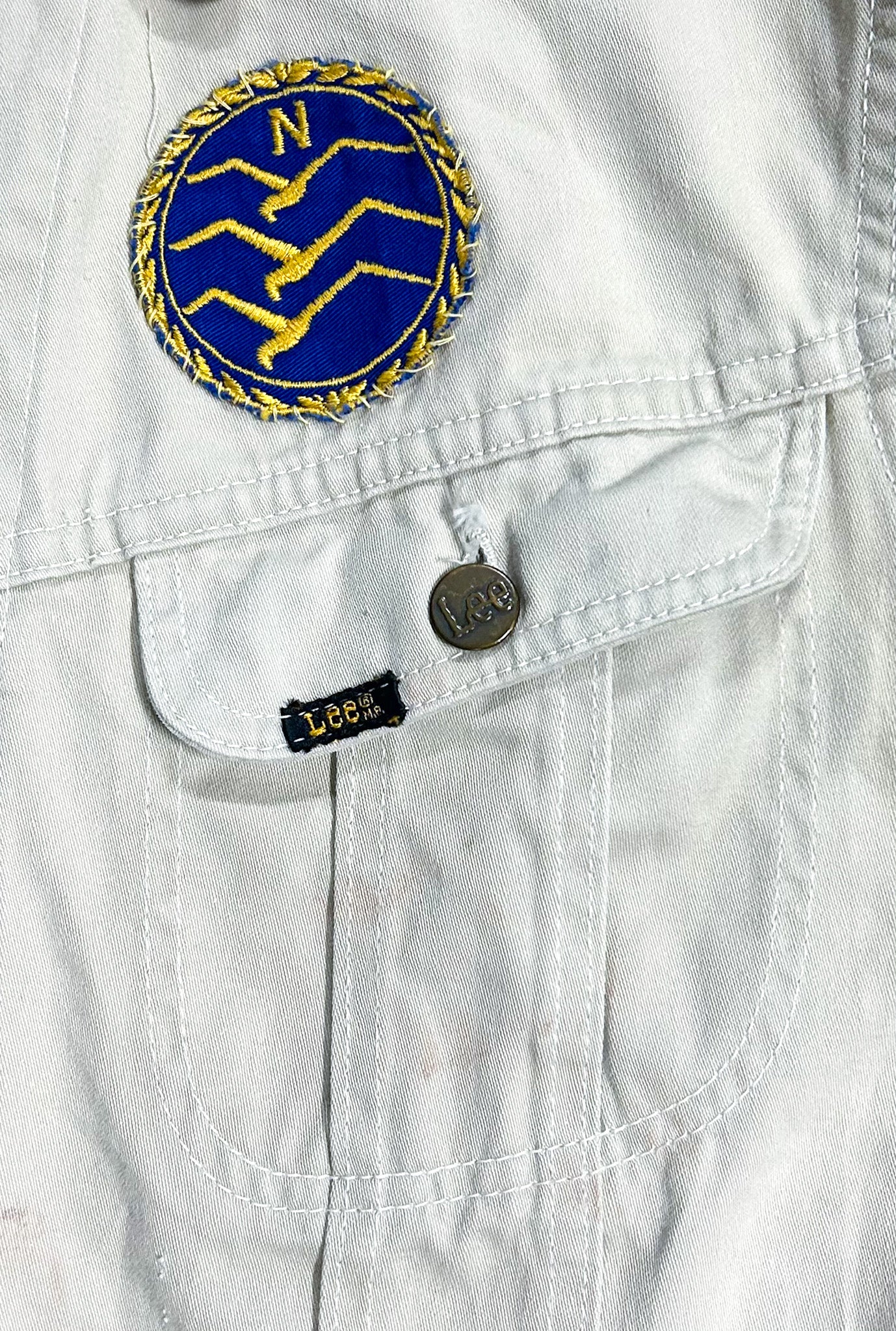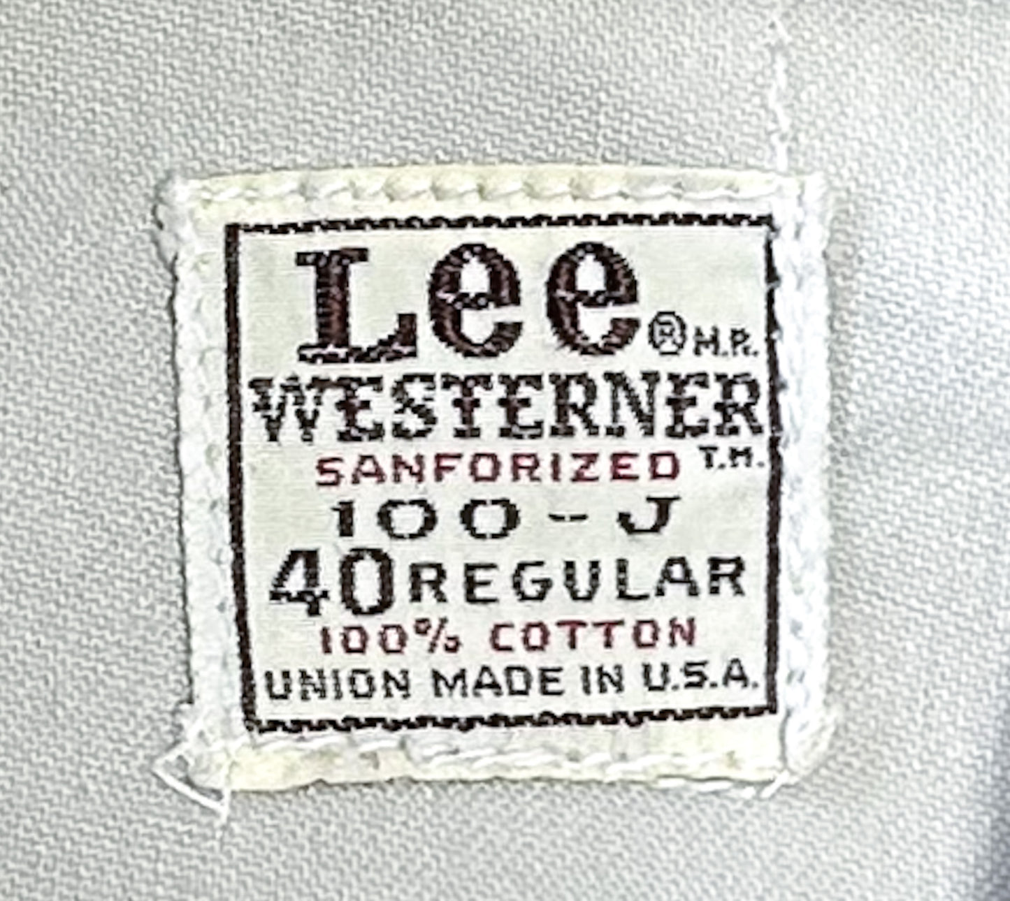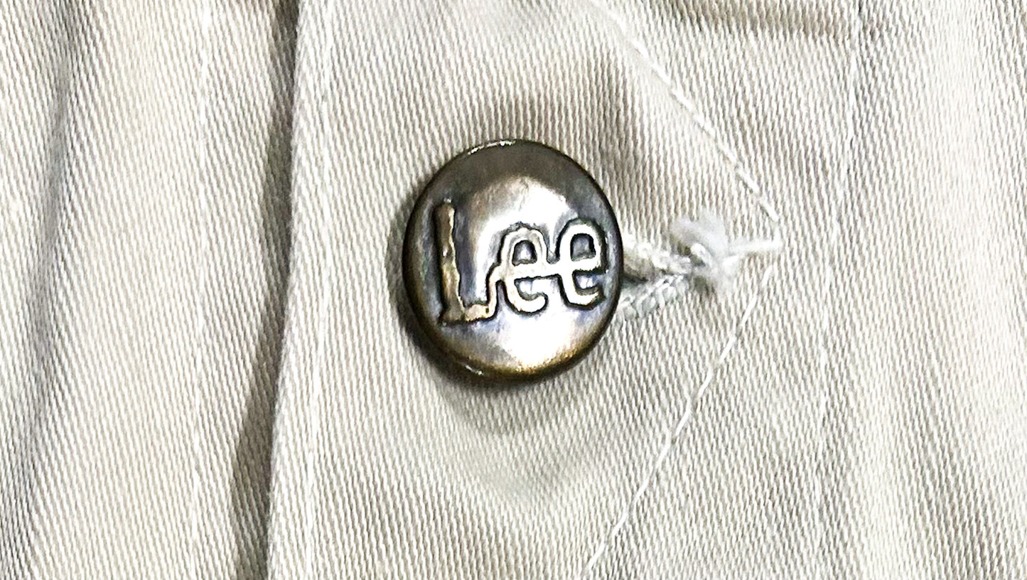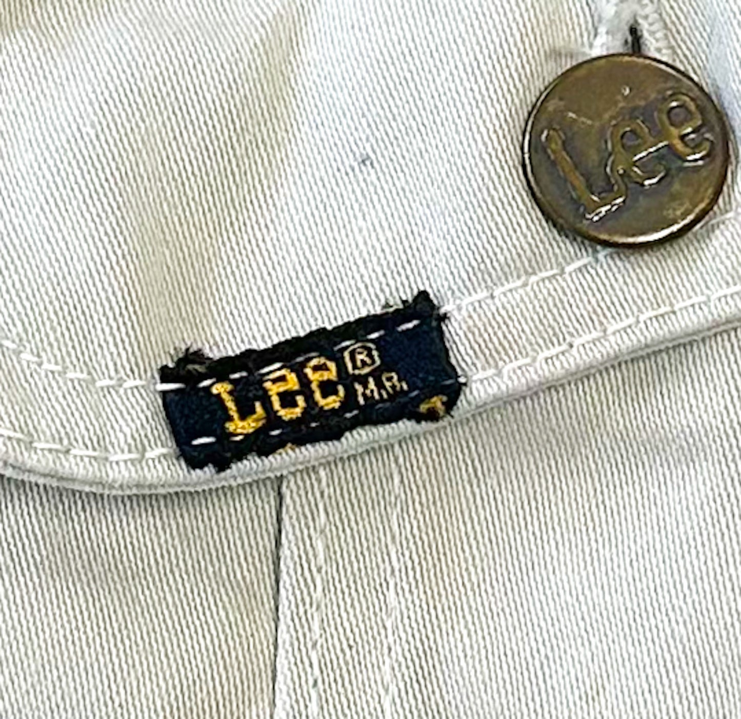 The Lee label has the 'R' and 'MR' embroidered on it, which tells us it's a 1970s made original. This is a rare find.